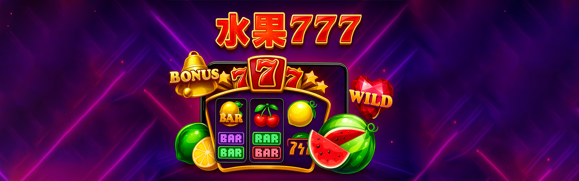 《水果777》是一款經典復古風格的水果主題老虎機遊戲,結合BAR、777、櫻桃、檸檬與WILD等象徵,讓你在炫目轉輪與高爆機率中,享受經典轉盤的極致快感。